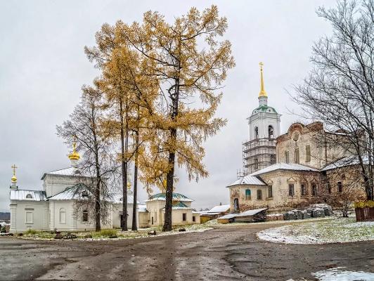 К середине XIX столетия на территории Белбажского монастыря было построено три церкви: центральный Троицкий собор с колокольней, храм в честь Введения во храм Пресвятой Богородицы и храм в честь Нерукотворного образа Спасителя