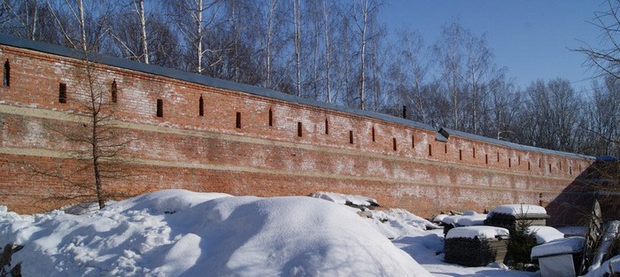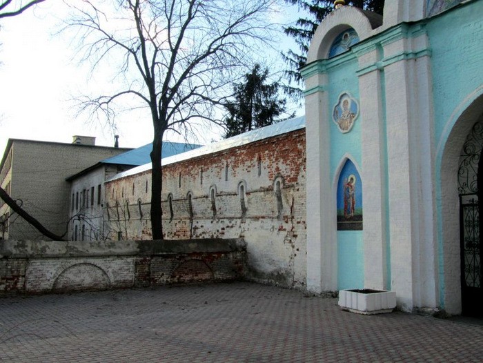 Все монастырские строения были огорожены массивной стеной-оградой из кирпича, выстроенной на случай военных действий. В нижнем поясе стены были проделаны небольшие амбразуры для огнестрельного оружия, а по верхнему гребню стены были сделаны бойницы и стрельницы. Монастырская ограда и в наше время выглядит как мощная крепостная стена, готовая в любой момент отразить нападение врага.