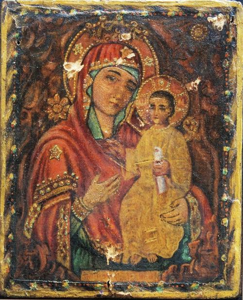 Несмотря на то, что по молитвам у иконы начали исцеляться многочисленные больные, настоятель Троицкой церкви отец Димитрий Митекин проявлял маловерие к иконе и должную честь ей поначалу не воздавал. И вот через два месяца, 23 декабря, икона ушла из церкви. Церковный сторож лишь видел, как яркая молния сверкнула от храма к источнику. Стали искать святой образ и нашли его сияющим над часовней у источника. Когда же открыли часовню и творила колодца, увидели, что лед в колодце подтаял и в нем плавает икона. Потрясенный, отец Димитрий раскаялся в своем неверии, попросил у Богородицы и у людей прощения. После этого икона всплыла и дала себя поднять из воды. С тех пор святой образ уже не покидал села.