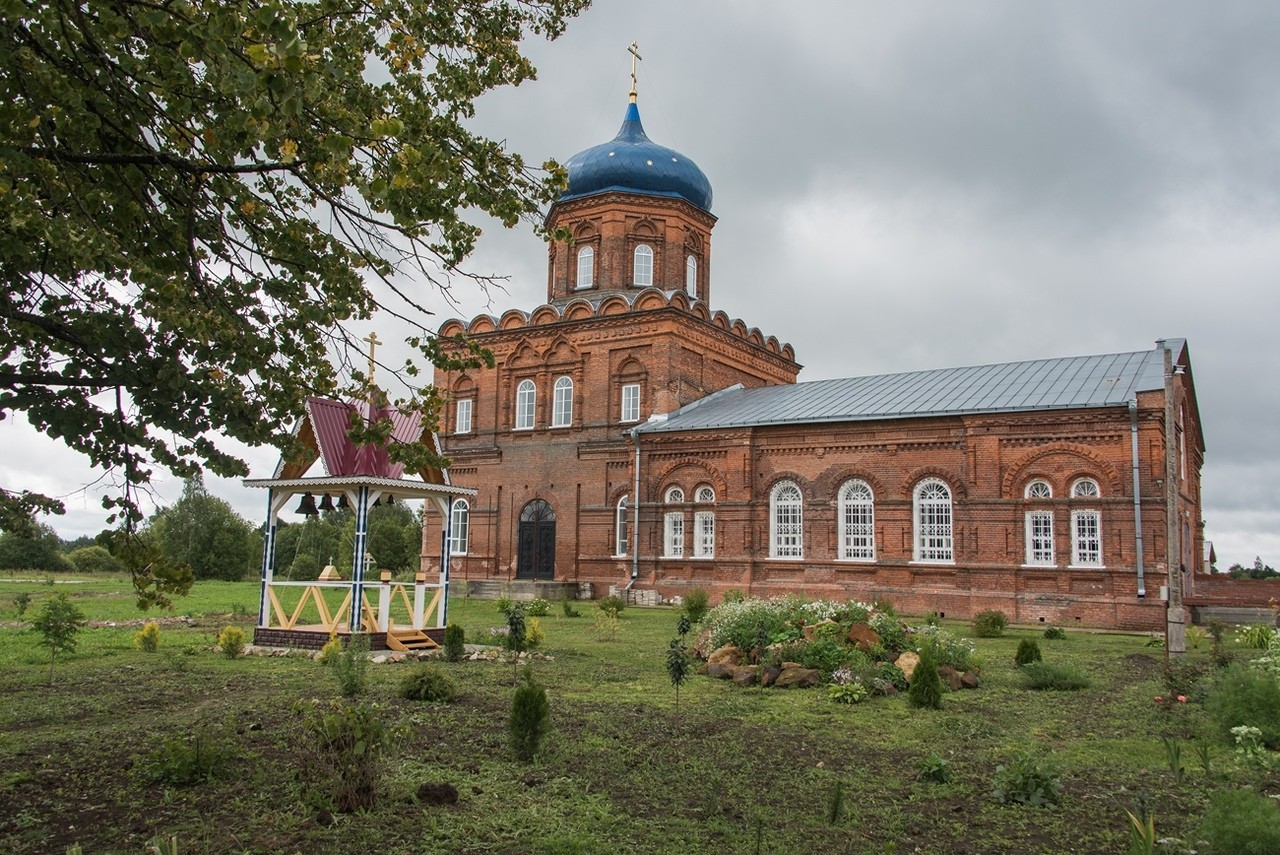 Храм трехпрестольный: центральный освящен в честь Успения Божией Матери, северный – Рождества Пресвятой Богородицы и южный – святителя Николая Чудотворца.