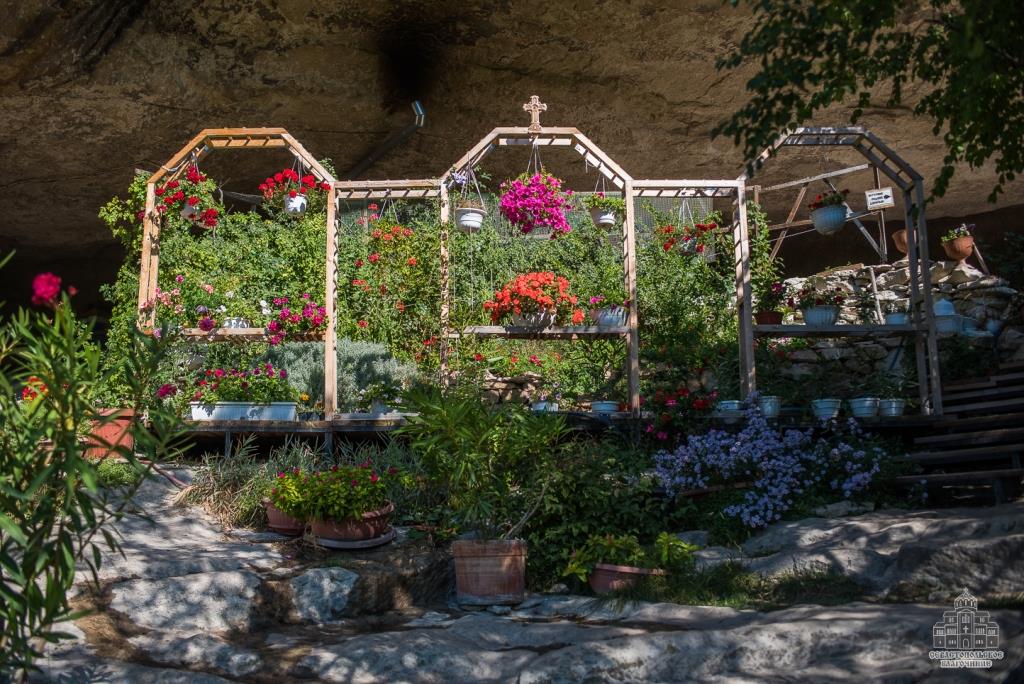 Здесь есть и кельи монахов, часть из которых является очень маленькими и имеет чрезвычайно низкие потолки, и складские пещеры, и большой трапезный зал, и покои эконома и, самое главное, собственный пещерный храм. Храм разместился в одном из больших естественных гротов, площадь которого боле ста пятидесяти квадратных метров. Этот грот отличается наличием скругленной формы. Он сужается к западу и востоку. Для алтаря тут было вырублено специальное углубление прямоугольной формы. В стенах этого углубления разместили несколько ниш. Апсида отделяется от остальной части этого пещерного храма благодаря наличию невысокой алтарной преграды. В северо-восточной части храма находится купель.
