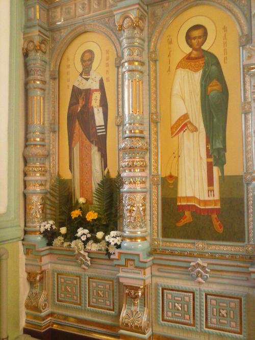 К моменту освящения в храме был установлен огромный фаянсовый иконостас, изготовленный на фабрике поставщика Двора Его Императорского Величества М. С. Кузнецова. На сегодняшний день иконостасы отреставрированы и они несомненно являются памятниками декоративно-прикладного искусства и художественной керамики начала ХХ в.