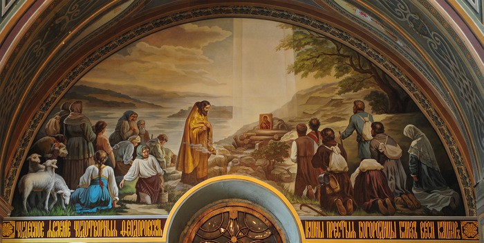 В деревянном храме Вознесения Господня хранилась главная сызранская святыня — икона Феодоровской Божией Матери, перенесенная сюда в середине ХУIII столетия из Кашпира. На тот ключ, где она явилась ежегодно шел крестный ход. Икону носили по домам, окрестным селам и деревням. Вскоре по переносу иконы случилось чудо. Жил тогда в Сызрани отставной дворянин Иван Васильевич Борисов. Был он человеком в годах и страдал сильной болезнью глаз, из-за которой временами лишался зрения. Будучи глубоко верующим, несколько лет упорно молился о выздоровлении образу Феодоровской Божией Матери. Вскоре он полностью излечился и в благодарность он дал обет выстроить вместо деревянного Вознесенского храма каменный, что и осуществил. Позднее в 1825 году новая церковь была расписана крепостным художником Никифором Андреевичем Резниковым, а в 1855г. она получила свое нынешнее название: во имя иконы Феодоровской Божией Матери.
