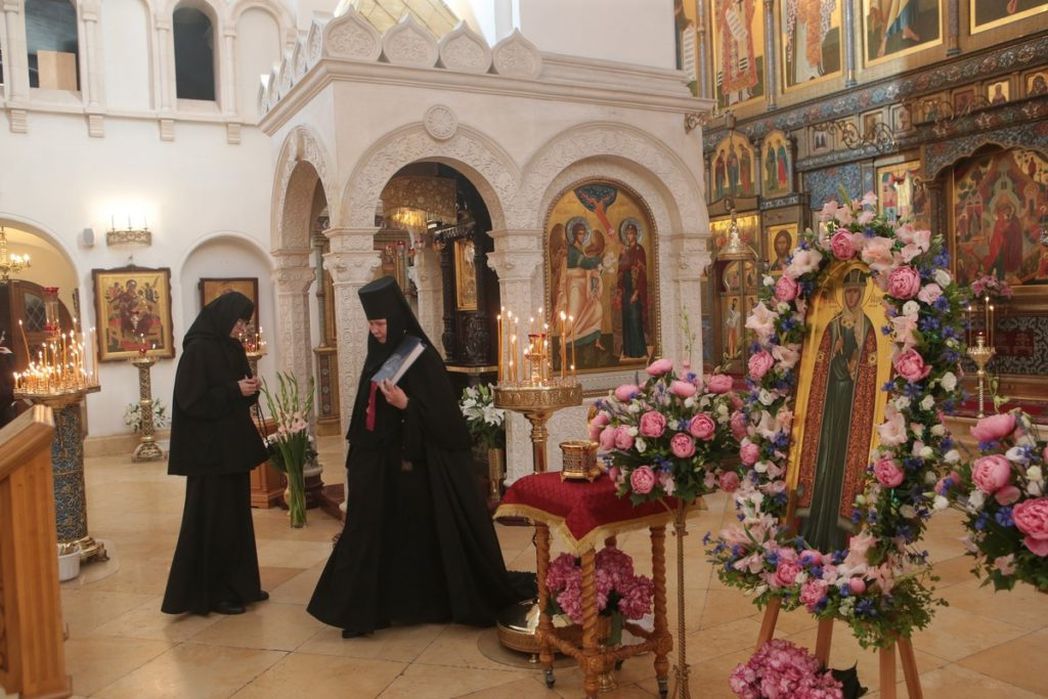 Монастырские сестры занимаются разными рукоделиями, проводят ознакомительные беседы по истории монастыря и его святыням с группами паломников.
