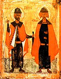 (во святом Крещении Романом). После убийства святого Бориса Святополк Окаянный послал к его младшему брату Глебу гонца с ложным известием о болезни уже скончавшегося к тому времени их отца, великого князя Владимира, для того, чтобы коварно убить возможного претендента на Киевский престол. Обманутый князь Глеб с небольшой дружиной поспешил в Киев. Предупреждение брата Ярослава, настигшее его у Смоленска, не остановило святого, не ожидавшего такого злодейства со стороны его брата Святополка. Недалеко от Смоленска убийцы настигли ладью Глеба, который не сопротивлялся, а только кротко молил пощадить его совсем еще юную жизнь. По приказу убийц повар Глеба перерезал ему горло. Тело князя было погребено в пустынном месте недалеко от Смоленска, "между двумя колодами", т. е. в простом деревянном гробу (+ 1015). В 1019 - 1020 гг. могилу святого Глеба разыскал его брат Ярослав, и тело, оказавшееся нетленным, было перенесено в Вышгород Киевский и погребено рядом со святым князем Борисом. Затем мощи братьев были перенесены (память 2 мая) в церковь во имя святителя Василия Великого, где у гробницы святых страстотерпцев совершались многие чудеса. Митрополит Киевский Иоанн составил службу князьям-страстотерпцам и установил им совместное празднование 24 июля, которое и свершается с первой половины XI века. Русская Церковь издревле почитает братьев-страстотерпцев, которые постоянно оказывают молитвенную помощь своей родной земле, особенно в годины тяжелых испытаний. Так, перед Невской битвой в 1240 году святые страстотерпцы Борис и Глеб явились в видении одному из воинов святого благоверного князя Александра Невского