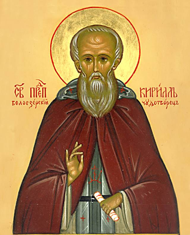 Свое последнее богослужение преподобный совершил в день Святой Троицы. Завещав братии хранить любовь между собой, преподобный Кирилл блаженно почил на 90 году своей жизни 9 июня 1427 г.