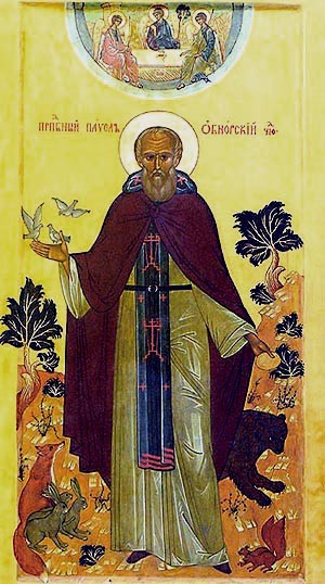 Преподобный Павел Комельский, славный ученик Преподобного Сергия Радонежского, родился в Москве в 1317 году. С юных лет он отличался благочестием и милосердием к бедным и страждущим. Богатые родители готовили его к мирской жизни, но сын в двадцать два года тайно покинул родительский дом и принял постриг в Рождественском монастыре на Волге (в Ярославской епархии). Оттуда Павел перешел в Свято-Троицкий монастырь к преподобному Сергию Радонежскому и несколько лет провел у него в келейном послушании, всецело повинуясь мудрому руководству святого старца. С благословения преподобного Сергия он поселился вдали от обители в отшельнической келлии, где пробыл пятнадцать лет в затворе. Испросив у преподобного Сергия благословение уйти в пустыню для безмолвной и уединенной жизни, он долго странствовал, отыскивая себе место для уединения. Он обошел много пустыней, был у преподобного Авраамия Чухломского (память 20 июля) и, наконец, остановился в Комельском лесу. Над речкой Грязовицей, в дупле старой липы преподобный устроил себе маленькую келлию и прожил там три года в полном безмолвии, "не дая покоя телу, за еже получити будущий покой". Затем он перешел на реку Нурму, где построил себе хижину и выкопал колодец. Дни его проходили в бдении и молитве. Пять дней в неделю он пребывал без пищи и только в субботу и воскресенье вкушал немного хлеба и воды. Широко распространилась молва об отшельнике, и к нему стали приходить желавшие его духовного руководства. Несмотря на любовь к уединенной жизни, преподобный никогда и никому не отказывал в духовном утешении и наставлении. Здесь его посетил преподобный Сергий Нуромский, который, также ища уединения, по благословению своего наставника Преподобного Сергия, проводил свою подвижническую жизнь в тех местах.