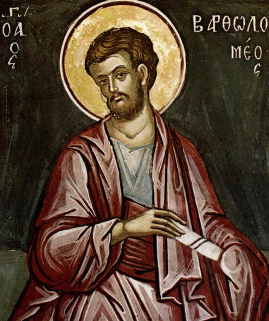 О святом апостоле Варфоломее упоминается в житии Иосифа песнописца (+ 883, память 4 апреля). Получив от одного человека часть мощей апостола Варфоломея, преподобный Иосиф принес их в свою обитель близ Константинополя и построил во имя Апостола церковь, в которой положил часть его мощей. Преподобный Иосиф горел желанием составить в честь святого хвалебные песнопения и усердно молил Бога даровать ему способность к составлению их. В день памяти апостола Варфоломея преподобный Иосиф увидел его в алтаре. Тот подозвал Иосифа, взял с престола святое Евангелие и возложил ему на грудь со словами: "Да благословит тебя Господь, песнопения твои да усладят вселенную". С того времени преподобный Иосиф начал писать гимны и каноны и украсил ими не только праздник Апостола, но и дни памяти многих других святых, составив около 300 канонов. Святители Иоанн Златоуст, Кирилл Александрийский, Епифаний Кипрской и некоторые другие учители Церкви считают апостола Варфоломея за одно лицо с Нафанаилом (Ин. 1, 45 - 51; Ин. 21, 2).