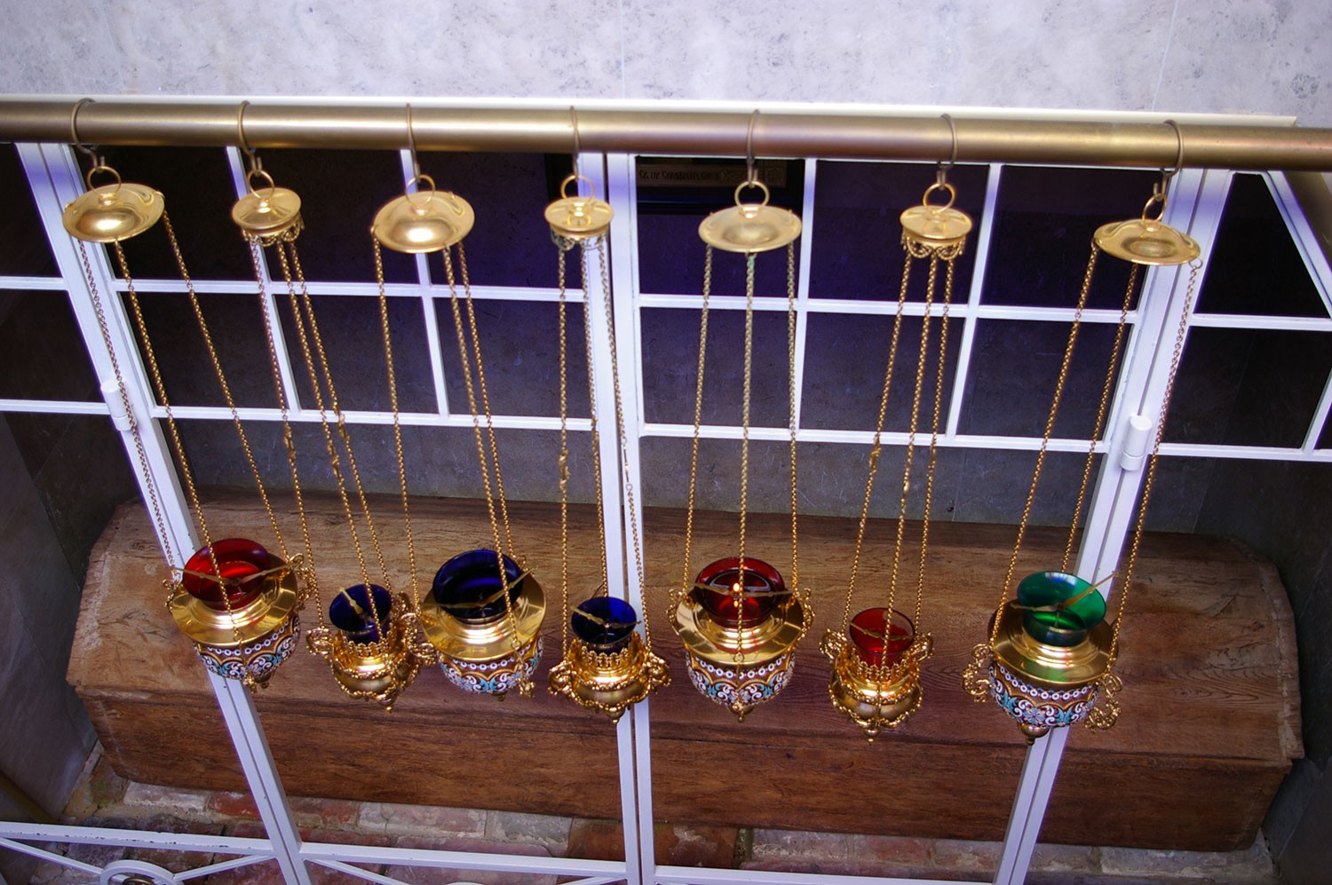 Над гробницею теплится неугасаемая лампада. В нижней части гробницы сделано круглое отверстие, через которое посетители берут с могилки преподобного старца мелкий песочек с верою в его целебную силу. У ног старца Серафима почивает друг его — саровский подвижник схимонах Марк, могила которого обозначена каменною плитою с надписью…"