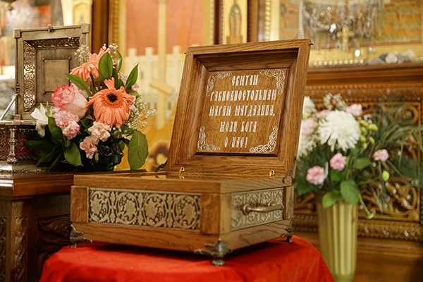 Ковчежец с частицей мощей равноапостольной Марии Магдалины передал монастырю святых Царственных Страстотерпцев в урочище Ганина яма схиархимандрит Илий (Ноздрин). Теперь мощи пребывают в Царском храме у иконы Царственных Страстотерпцев, возле креста-мощевика.