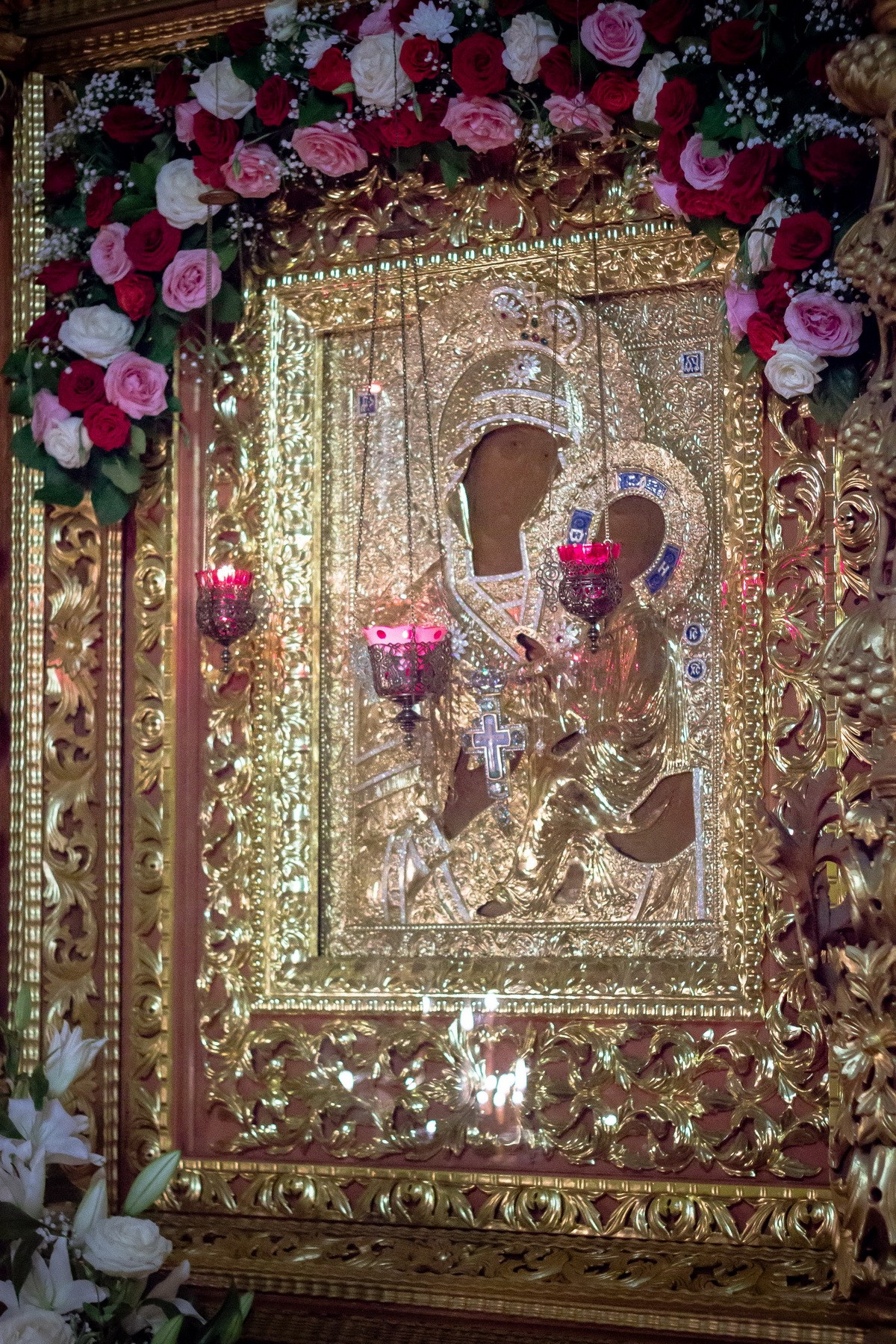 Освящается, Богородице, Твоею благодатию всяк ум верных и возвышается чудным иконы Твоея пришествием, юже благочестно почитающих и Тебе верно славящих, сподоби, Владычице, нас, рабов Твоих, Вышняго причастия.