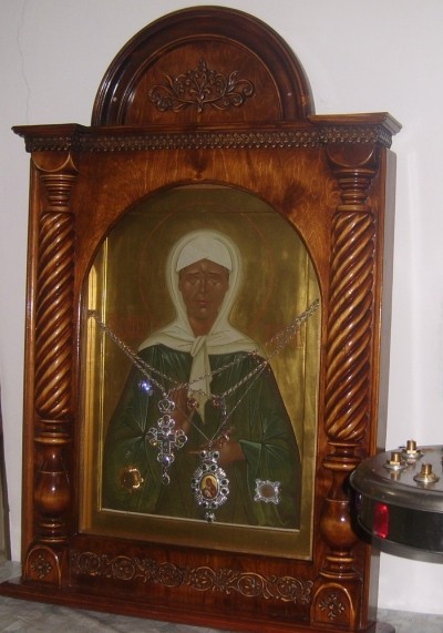 Икона блаженной Матроны Московской с частицей мощей.