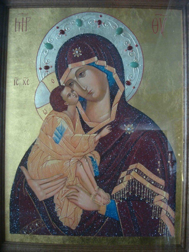 Радуйся, яко паче жемчуга слезами радости икона Твоя украшается; радуйся, отечеству нашему победы обильныя дарующая.