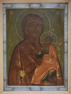Исследования показали, что данная икона является списком XVI века, сделанным с Полоцкого чудотворного образа XII века. Очевидно, что этот список был двухсторонним и выносным, как и оригинал из Русского музея. С обратной стороны списка находился образ святителя Николая Чудотворца, который со временем был утрачен. Однако, несмотря ни на какие испытания (пожар, войны, гонения XX века), по Божию Промыслу святой образ Пречистой Девы XVI века пришел к родному граду преподобной Евфросинии.