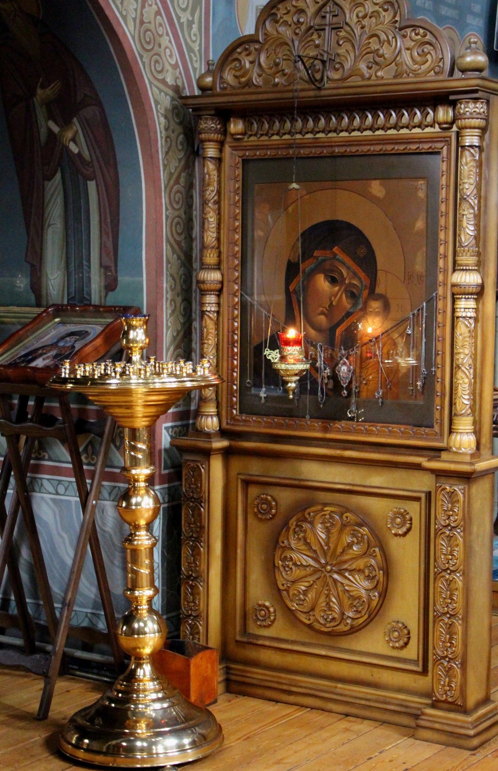Я́ко светоприе́мную свещу́, зри́м Твою́ честну́ю ико́ну, Пресвята́я Влады́чице: та́ бо невеще́ственный о́гнь благода́ти Твоея́ восприе́мши, и в подо́биих ея́ но́вы возжига́ет свети́льники, прича́стны тоя́жде си́лы благода́тныя, и озаря́ет чудесы́, наставля́ющи на пу́ть спасе́ния все́х вопию́щих Ти́ си́це: