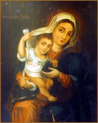 На этой иконе, по описанию духовника обители епископа Арсения (Жадановского) «Божия Матерь головным платком прикрывает и как бы от кого защищает Богомладенца, а Он держит в руке кисть винограда – эмблему Святого Причащения, при котором не страшны никакие невзгоды...»