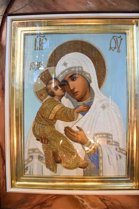 Твою, Богомати, всечестную и чудотворную икону российстии люди стяжавше, яко заступление крепко и стену нерушиму, молятся Ти, на враги победу даровати отечеству нашему.