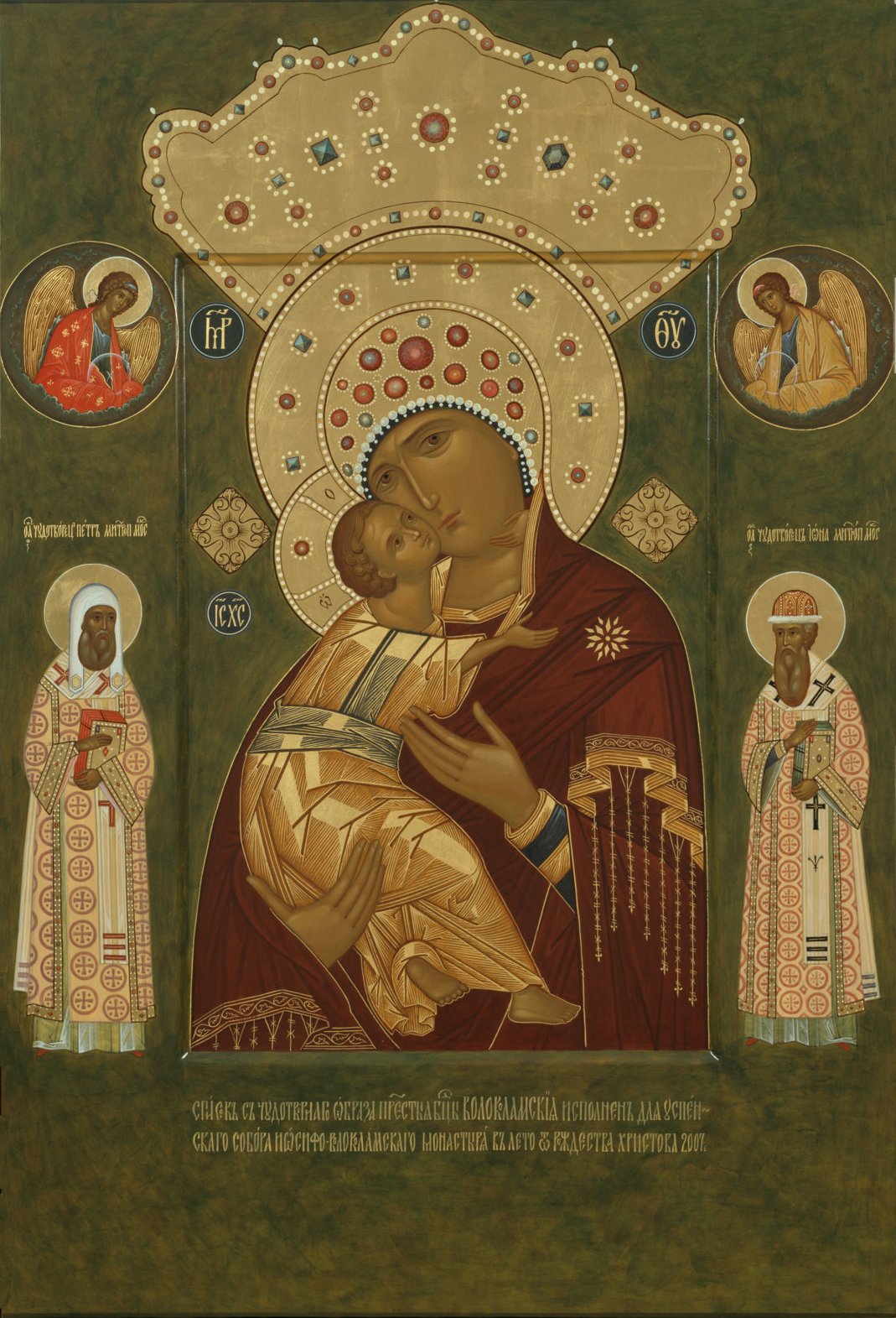 Волоколамская икона Божией Матери — список с Владимирской иконы Московского Успенского собора. Икона была привезена из Звенигорода в Успенский монастырь преподобного Иосифа Волоцкого 2 марта 1572 года, на 2-й неделе Великого поста и торжественно встречена игуменом Леонидом (1563–1566; 1568–1573) со всей монастырской братией.