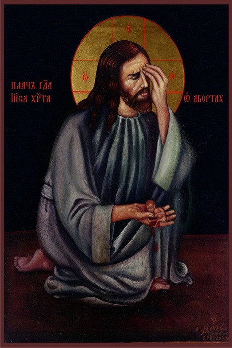 Икона «Плач Иисуса Христа о убиенных младенцах», или как ее еще её называют «Плач Иисуса Христа об абортах» происходит из православного греческого монастыря преподобного Герасима Иорданского, расположенного недалеко от Иерусалима. Ее автор игумен Хризостом. Под главным монастырским храмом находится подземная церковь с пещерой, где, по преданию, останавливалось Святое Семейство во время бегства в Египет.