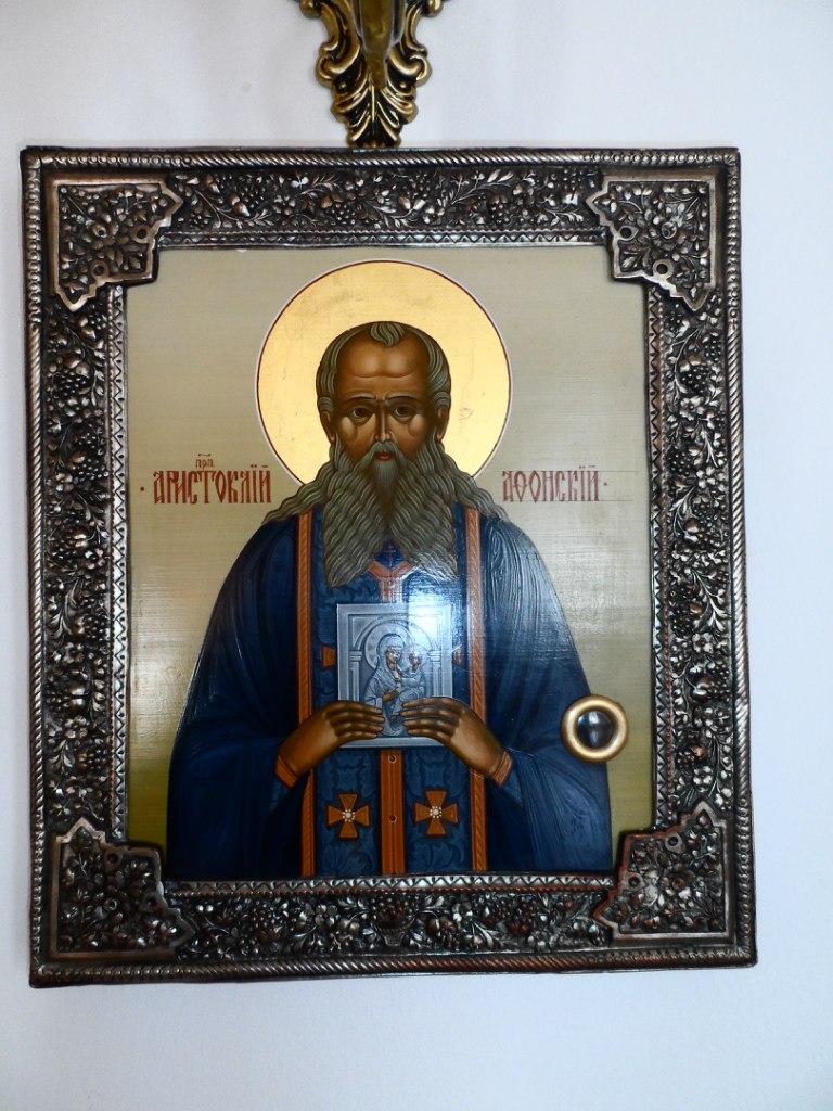 Икона преподобного Аристоклия Афонского с частицей мощей.