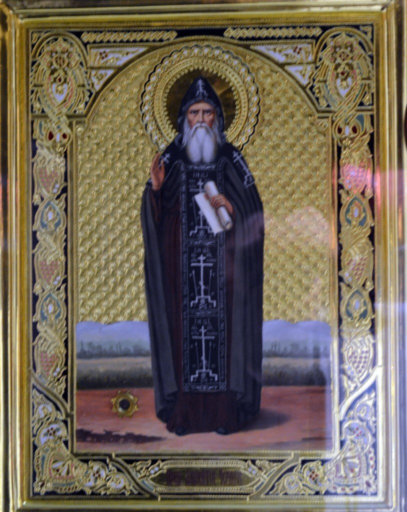 Икона преподобного Лаврентия Черниговского с частицей мощей.