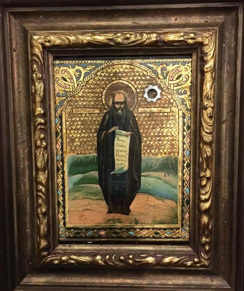 Икона преподобного Трифона Печенгского с частицей мощей.