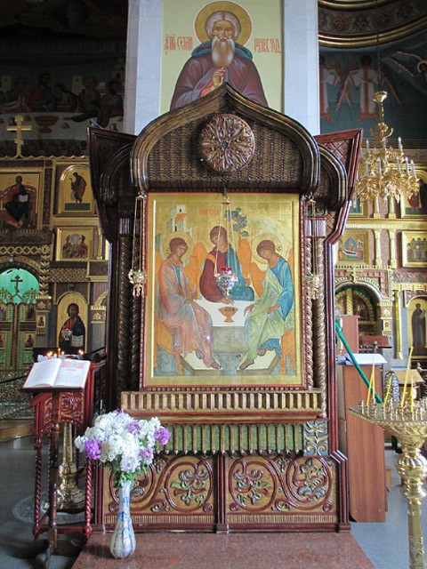 Икона Пресвятой Троицы находится в центральной части храма на правой колонне. В нее вделана частица от Мамврийского дуба со Святой Земли.