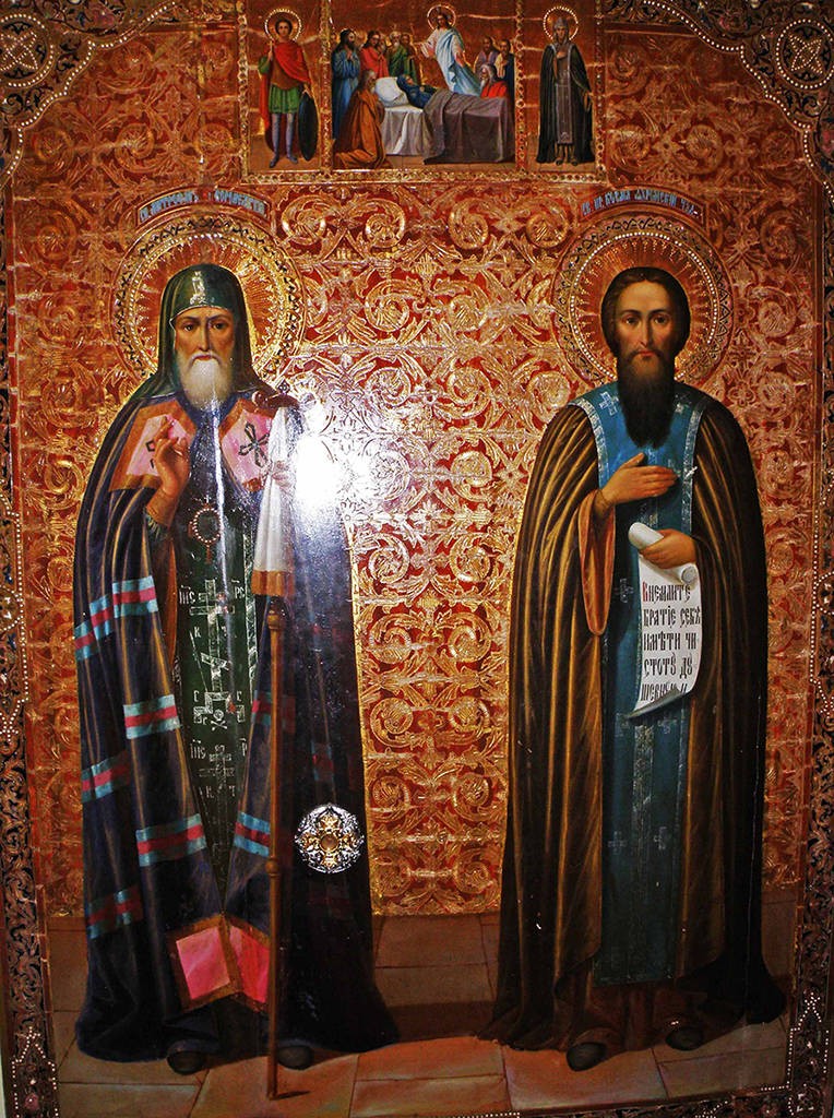 Икона святителя Митрофана Воронежского и преподобного Космы Яхромского с частицей мощей святителя Митрофана Воронежского
