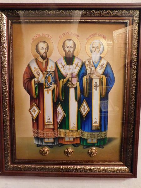 Икона трех святителей: Василия Великого, Григория Богослова и Иоанна Златоустого с частицами мощей
