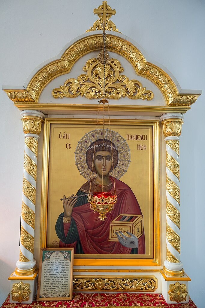 Икона великомученика и целителя Пантелеимона с частицей мощей