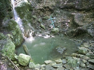 Источник Трёх Святителей (св. Василия Великого, св. Григория Богослова, св. Иоанна Златоуста) – находится в горах выше от монастыря. От источника св. Георгия до источника Трех Святителей – 45 минут ходьбы. Вода источника стекает со скалы в небольшое озеро, в котором окунаются паломники. Считается, что вода из источника Трёх Святителей помогает при болезнях нервной системы. Для тех, кто или по болезни, или по нехватке времени не может подняться к источнику Трех Святителей, вода проведена на территорию монастыря – в нижнюю купель и в колонку с красной крышей, расположенную рядом с храмом святой прпмчц. Параскевы.