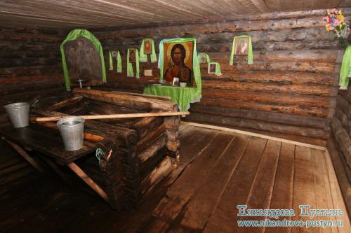 На юг от обители расположен Никандровский источник. Источник прп. Никандра, по преданию, был ископан самим преподобным и святой брал отсюда воду для своих нужд.