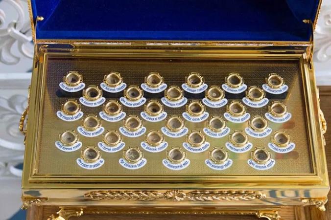 Ковчег с частицами мощей Глинских святых, святителя Спиридона Тримифунтского, мученика Трифона и других святых