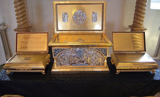 В обители находятся частицы мощей святого Феодосия и преподобного Лаврентия Черниговских, частицы мощей преподобных Оптинских старцев, частица мощей преподобного Ферапонта из монастыря Рождества богородицы г.Можайска; камень со Гроба Господня, привезенный со Святой Земли; частицы мощей Вифлеемских младенцев Иродом убиенных из Вифлеема.