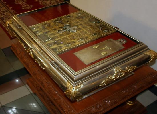 ковчежце пребывают частица Животворящего Креста Господня и частицы мощей 25-ти