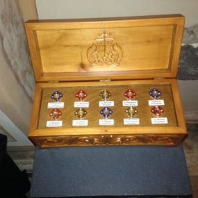 В малом ковчеге собраны частицы мощей преподобных жен. Незримо среди молящихся присутствуют эти святые угодницы, источая благодать всем, с верою покланяющимся их святым мощам. Древние пустынницы — преподобная Евпраксия , дева Тавенская — небесная покровительница преподобной Евпраксии Зачатьевской, и преподобномученица Феврония, дева Сирская. Славные подвигами преподобные Марина Сирийская, Ксения Римляныня и Мелания. Достойные сестры великих мужей — богомудрая Макрина Каппадокийская, сестра святителя Василия Великого и преподобная Схоластика, сестра прп. Венедикта Нурсийского. Малоизвестная в России удивительная святая древней Церкви — преподобная Севера Трирская, игумения. Святые угодницы, почитающиейся как местночтимые в епархиях Русской Православной Церкви — преподобная Пелагея Старицкая, сродница св.патриарха Иова, и преподобная Анастасия Киево-Покровская (княгиня Романова).