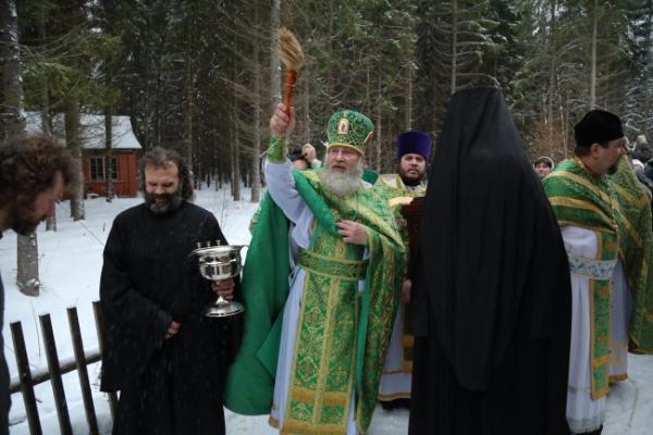 Вновь и вновь отыскивая старца в непроходимых дебрях, паломники слёзно просили позволения навсегда поселиться при нем. Не смея отказать в мольбах жаждущим пищи духовной и поняв волю Божию, преподобный Макарий дал согласие ревнителям подвигов и жизни иноческой поставить свои келии, чем положил начало скиту. Первым игуменом стал сам подвижник, получивший духовный сан от святителя Макария, архиепископа Новгородского, впоследствии митрополита Московского и всея Руси. Около 1540 года братия выстроила небольшую деревянную церковь Успения.