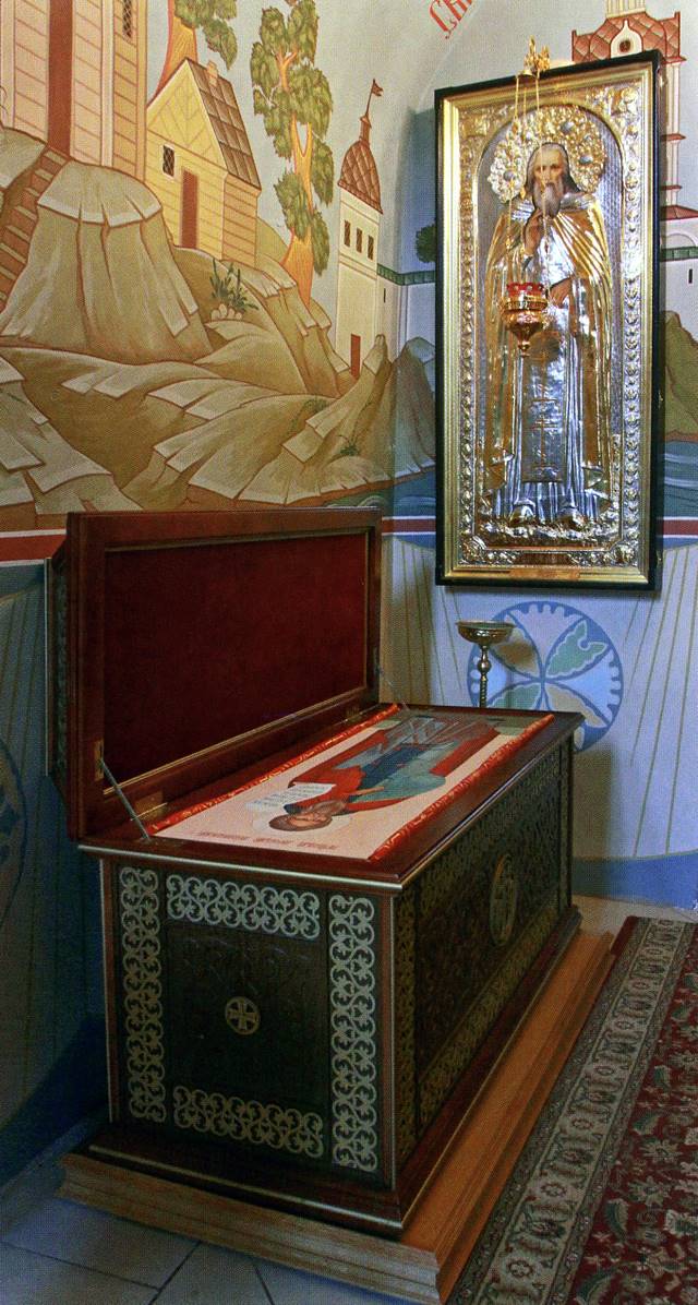 Мощи преподобного Мефодия Пешношского под спудом