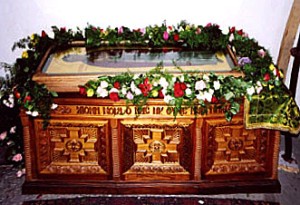 Около 1420-1425 годов святитель Фотий Митрополит Московский благословил открыть мощи святого Никиты. Игумен монастыря с братией совершил молебен, затем открыл бересту, которой было обёрнуто нетленное тело, но вдруг могила закрылась землёй, и мощи остались под спудом.