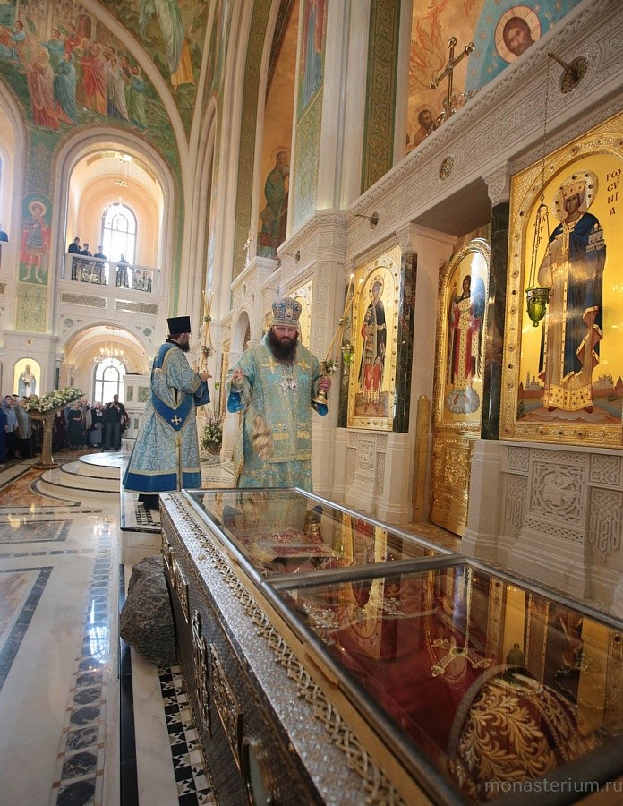 Главной святыней обители являются честные мощи небесного покровителя обители священномученика Илариона (Троицкого), перенесенные из Санкт-Петербурга в мае 1999 г.