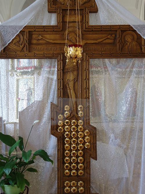 В мощевике находятся: частицы мощей прав. Василия Павлово-Посадского, блг.кн. Андрея Переяславского, сщмч. Константина Богородского, свт. Иннокентия Херсонского, прп. Илариона Троекуровского , сщмч. Николая Любомудрова, прав. Ионы Одесского, свт Афанасия Ковровского, свт. Исаии Ростовского, прав. Феодосия Балтского, блг.кн. Романа Угличского, прп. Даниила Переяславского, прп. Авраамия Ростовского, свт. Иоанна, архиепископа Новгородского, прп. Шио Мгвимского, свт. Иоанна, епископа Суздальского, блг.кн. Андрея Смоленского, , свт. Игнатия, епископа Ростовского, сщмч. Фаддея, епископ Тверского, прп. Феодосия Тотемского, прп. Макария Калязинского, прп. Давида, игумена Вознесенского, прп. Германа Святогорского, кровь сщмч. Владимира Киевского, лист Неопалимой Купины, часть гроба свт. Филарета, митрополита Московского, прпп. Киево-Печерских, часть гроба свт. Тихона, патриарха Московского, часть мантии сщмч. Владимира Киевского, часть мантии прп. Кукши Одесского, часть гроба прп. Кукши Одесского, часть одежды от мощей свт. Иоанна Тобольского, часть гроба сщмч. Владимира Киевского, часть гроба прп. Анатолия Оптинского, часть гроба прп. Ионы Киевского, часть одежды свт. Тихона Задонского.