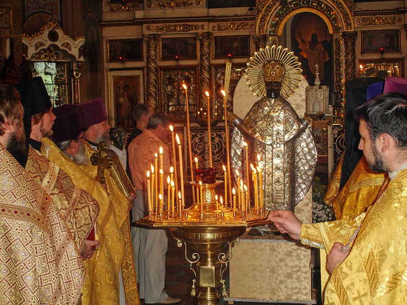 С этого времени в течение полутораста или более лет он находился в великой славе, источая множество исцелений, которых уже в начале XVIII века было засвидетельствовано более 250. Но в 1722 году монастырь обвинили в том, что он слишком усердно распространяет вести об исцелениях у образа святителя, и по указу императора Петра I икона была взята из монастыря и поставлена с прочими резными образами при Святейшем Синоде и находилась там пять лет.