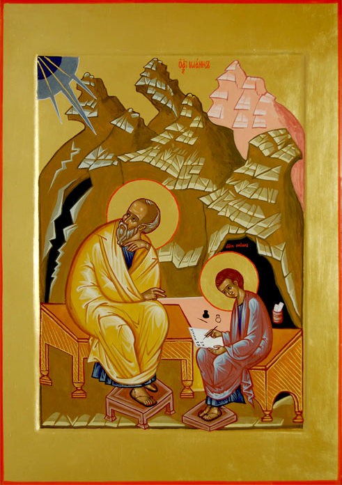 Апостол Иоанн удалился со своим учеником Прохором на пустынную гору, где наложил на себя трехдневный пост. Во время молитвы апостола гора заколебалась, загремел гром. Прохор в страхе упал на землю. Апостол Иоанн поднял его и приказал записывать то, что он будет говорить. "Аз есмь Альфа и Омега, начаток и конец, глаголет Господь, Сый и Иже бе и Грядый, Вседержитель" (Откр.1:8), – возвещал Дух Божий через святого апостола. Так около 67 года была написана Книга Откровения (Апокалипсис) святого апостола Иоанна Богослова. В этой книге раскрыты тайны судеб Церкви и конца мира.