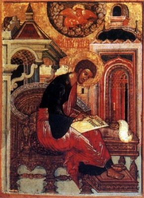 Предание усваивает ему написание первых икон Божией Матери. "Благодать Рождшегося от Меня и Моя милость с сими иконами да будет", - сказала Пречистая Дева, увидев иконы. Святой Лука написал также иконы святых первоверховных апостолов Петра и Павла. Евангелие написано им в 62 - 63 годах в Риме, под руководством апостола Павла. Святой Лука в первых стихах (Лк. 1,3) четко выразил цель своего труда: наиболее полно и в хронологической последовательности описал по порядку всё, что известно христианам об Иисусе Христе и Его учении, и тем самым дал твердое историческое обоснование христианского упования (Лк. 1, 4). Он тщательно исследовал факты, широко использовал устное предание Церкви и рассказы Самой Пречистой Девы Марии (Лк.2,19;Лк.2,51).