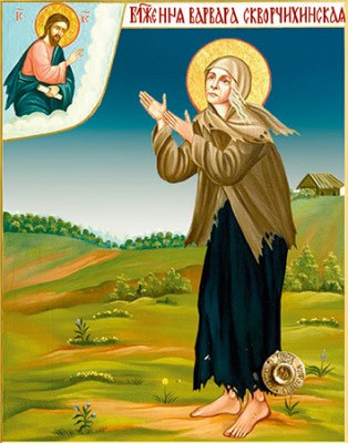 Причем, ведомы были события, поступки, мысли людей, даже их сны. Свидетелями этих дарований являлись не только простые верующие люди, но и священники. Блаженная Варвара с первых лет ухода в затвор принимала людей, требующих помощи и совета. В таком ее служении — тайна воли Божией. Не забудем, блаженная совершала подвиг в тяжкое время гонений на Церковь, и самим фактом своей жизни во Христе, своими чудесными духовными дарованиями она противостояла неверию и безбожию. Наверное, поэтому Господь и возложил на нее крест служения людям с первых лет ухода в затвор. Пред самой кончиной попустил Господь блаженной еще одно страдание. В субботу вечером 26 февраля в сарае случился пожар.За две недели до ее кончины, 13 февраля, в Воскресенье Господь послал вестника Своего предупредить, дабы она готова к уходу в иной мир. Душа блаженной мирно и тихо отошла ко Господу утром в воскресенье 14/27 февраля. до кладбища гроб на полотенцах несли девочки, сменяя друг друга, с небольшими остановочками. Головка каждой девочки была украшена цветочком из ленточек, прикрепленным к платку, ленточки были повязаныи на рукава шубеек. Во время похорон многими чудесами Господь показал, сколь благоугодила Ему жизнью и подвигами блаженная затворница.Голуби невесть откуда незаметно появились, сопровождали гроб до самого кладбища, кружили над могилкой до тех пор, пока не водрузили крест. Много лет прошло со дня кончины святой подвижницы, но не зарастала тропинка к ее могилке, бережно сохраняемой верующими.