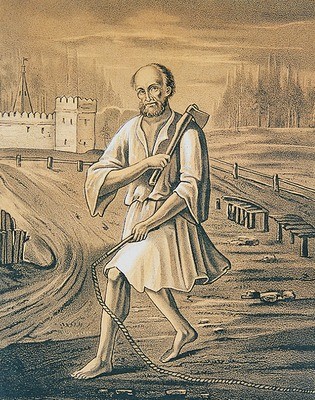 Блаженный Андрей Христа ради юродивый, Мещовский чудотворец, родился в 1744году (дер. Овсянниково Мещовского уезда Калужской пров. Московской губ.). Умер 28.06.1812г. в Мещовске. Торжественно захоронен в средней восточной башне Свято-Георгиевского монастыря на месте, которое выбрал сам. Родился Андрей в крестьянской семье. С детства отличался любовью к уединению, не играл с детьми, был тих, кроток и молчалив. После смерти матери принял подвиг юродства. Странствовал по соседним деревням почти нагим, с топориком и плетью. От людей, считавших его безумным, терпел обиды, унижения и побои. В возрасте 35 лет Блаженный Андрей перебрался в Мещовск, где его приютила вдова Е. Сухова, в доме которой он и прожил до самой смерти. Все, что ему подавали, Андрей Мещовский раздавал бедным, особо сочувствовал сидевшим в остроге солдатам. Был усердным молитвенником, любил посещать Мещовский Свято-Георгиевский монастырь. Блаженный Андрей обладал даром исцеления и прозорливости, незадолго до своей кончины предсказал нашествие французов. Память Блаженного чтилась жителями Мещовска, на его могиле служили панихиды, с нее брали песок для избавления от различных болезней, в особенности для исцеления детей.
