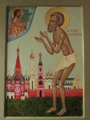 В шестнадцатилетнем возрасте блаженный Василий начал тернистый путь юродства. В палящий зной и лютый мороз ходил он нагой и босой по улицам Москвы. Вскоре жители признали в нем юродивого, человека Божия, обличителя неправды. У Пречистенских ворот он увидел беса в облике нищего и немедленно прогнал. Посещая корчмы, блаженный видел зерна добра в падших людях, подкреплял их лаской. Когда святой однажды проходил мимо дома, в котором безумно веселились и пьянствовали, то со слезами обнимал углы дома. На вопрос, что это значит, он отвечал: «Ангелы скорбные стоят у дома и сокрушаются о грехах людских, а я со слезами упрашивал их молить Господа об обращении грешников».