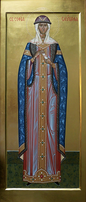 Святая праведная София, княжна, а затем княгиня Слуцкая, происходила из древнего рода Олельковичей, княживших в городе Слуцке, одном из древнейших городов Северо-Западной Руси. Слуцк впервые упомянут в летописях под 1116 годом – тогда он принадлежал великому князю Киевскому Владимиру Мономаху. Около 1270 года город оказался во власти литовских князей и в 1395 г. образовал особый удел со своими князьями, родоначальником которых стал внук великого князя Ольгерда Александр (Олелько) Владиславович. Под их управлением Слуцк строился, укреплялся и к XV веку считался одним из главных городов Литвы. Много раз осаждали его татары, но так и не смогли взять грозной цитадели. Род Олельковичей явил миру немало благочестивых христиан, хранивших верность православной церкви. Дед святой Софии Юрий Юрьевич – великий почитатель православных святынь, известен собственноручно переписанным Евангелием, переданным в дар Слуцкому Свято-Троицкому монастырю. Кроме того, сохранились грамоты князя Юрия и его супруги Екатерины о слуцких церквях и монастырях. В своем духовном завещании князь увещевал сыновей попечительствовать, подобно ему, над Свято-Троицким монастырем, не отнимать у обители данных ей пожертвований и привилегий, твердо держаться православия.