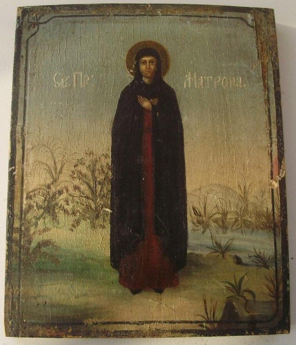 Мужескомудрено утаившися вражиих лукавых путей, Матроно, к жизни воистину шествовавши несумненною волею и неуклонное течение Богомудро скончавши, от Христа прияла еси благодать духовную, тем и воду цельбам источаеши любовию притекающим в память твою славную, мнихом похвала, моли Христа Бога спастися душам нашим.