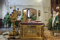 Прииде погребсти тя Патриархов первейший, царь же, вельми христолюбивейший, князи, старцы и юнии и монашествующих лицы, Божественным мановением освящающеся прикосновением твоим, блаженне.